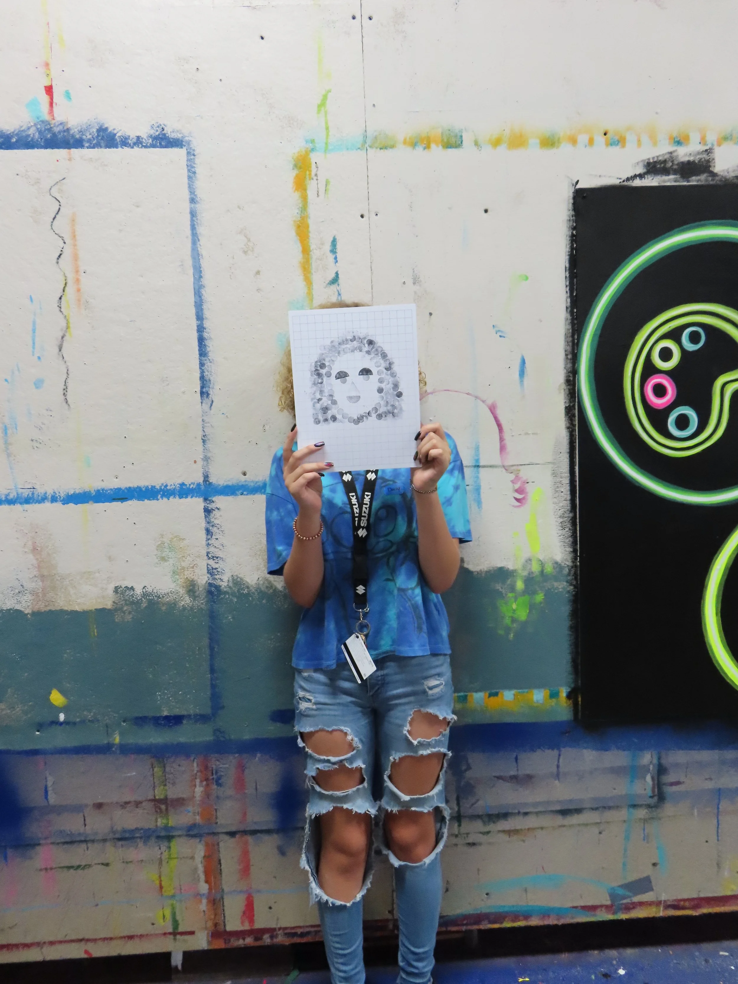 DAMA staff was excited for us to bring the Our Town Everywhere project to their Summer youth interns. The interns stamped their portraits and then used those as a jumping off point for practicing their painting skills at a larger scale.