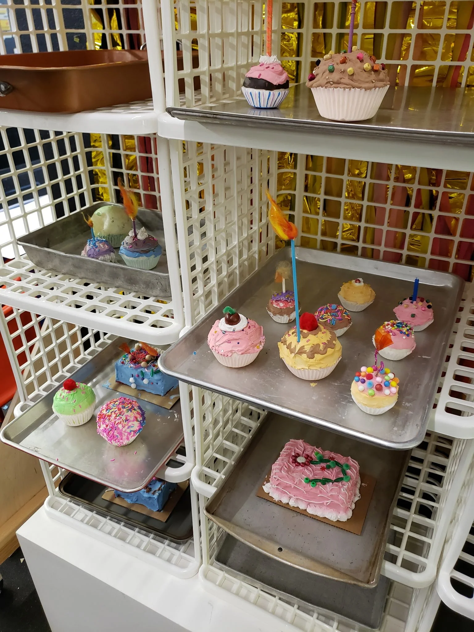Can we build a cake structure out of pipe cleaners, frosting out of caulk or fabric, sprinkles out of sequins?? What cake from your past do you have the strongest memory of? Do you want to try recreating it with spackle and spray foam?
