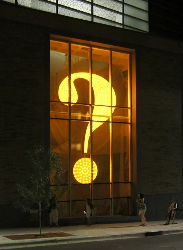 ![]()  "Question Mark" (2013) by Roberto Behar & Rosario Marquardt (R&R Studios)Metal, lightbulbs “We weave together visual arts, architecture, design, landscape and the city. The ambition of our practice is to reclaim, enhance and develop the public dimension of the city. We seek to produce a public architecture that highlights the communal and civic dimension of life and erases boundaries between art and everyday life. We understand our work as experiments in public space, models of possibilities that might imbue the construction of the city with new meaning and emotion.” —R+R Studio