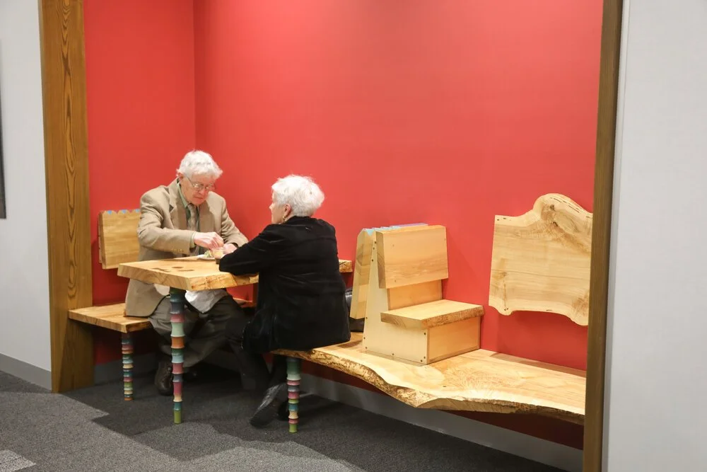 The Madison Public Library received funding through the Madison Arts Commission’s Art in Public Places Program and a donation from Madison Public Library Foundation. Additionally, the Madison Community Foundation funding was secured through an offshoot of the Phoenix from the Ashes project, a Madison Community Foundation-funded partnership involving Madison Parks Department, Madison Arts Commission, and Wisconsin Urban Wood.