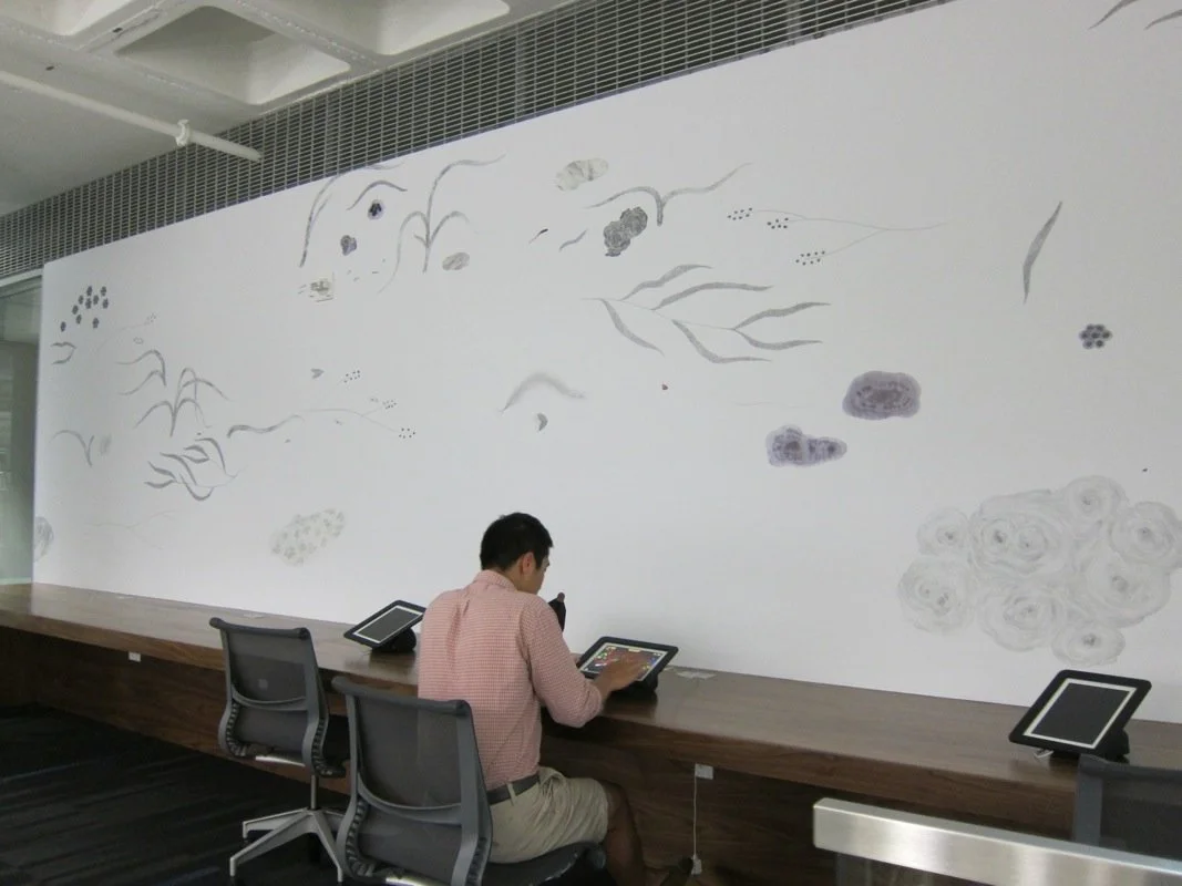 Public art has been central to Madison Public Library’s commitment to creating an appealing and inviting environment for the entire community to discover and learn in. When Madison Central Library was renovated in 2013, earlier installations were incorporated alongside new commissions.