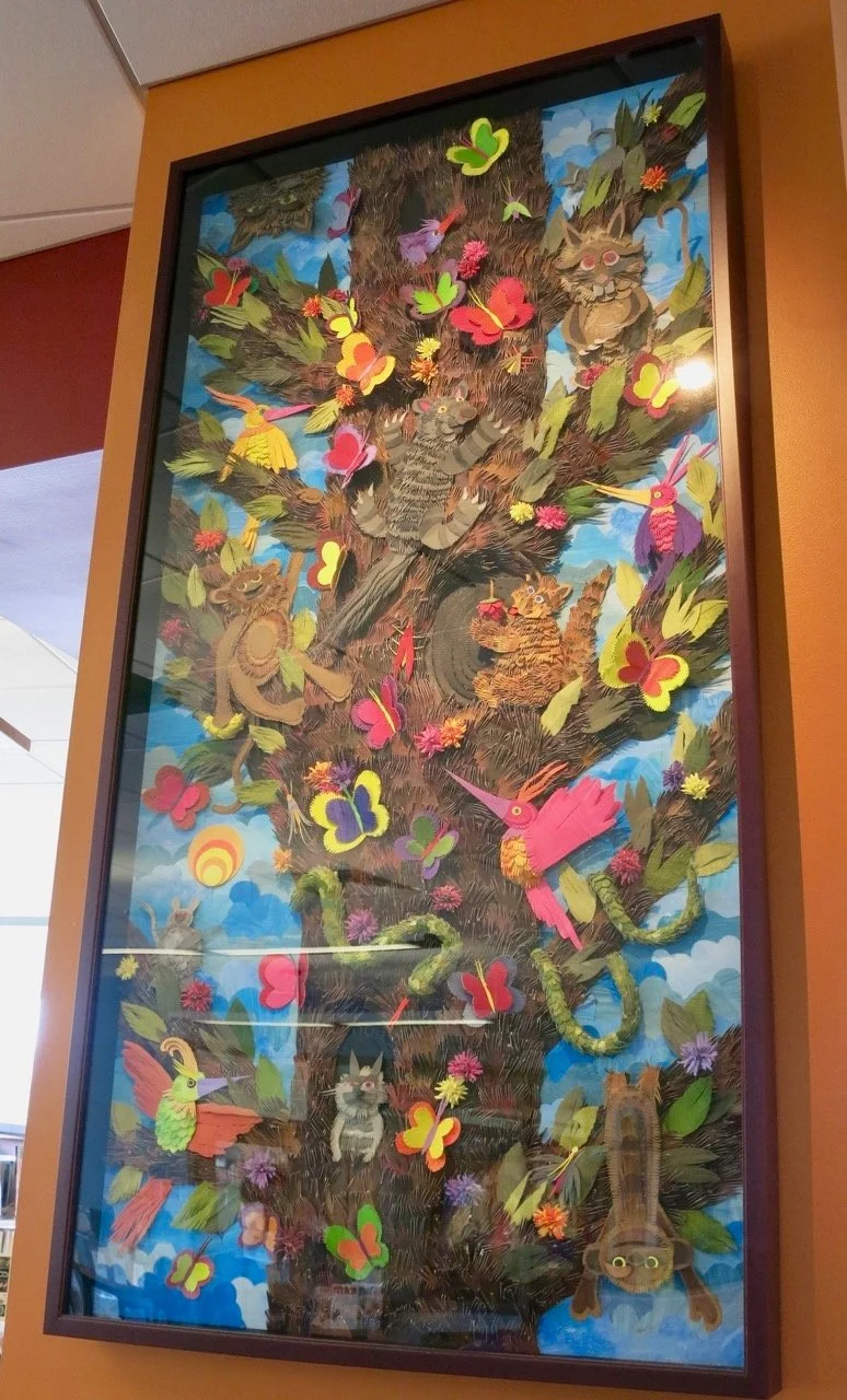 Pinney Library, the newest branch, also demonstrates the importance of art, both permanent and evolving, with contributions from the community. Over time, numerous conversations have revealed that the public wants art that reflects yours and our own vibrant community, drawing on elements of the natural world and highlighting the importance of playfulness and curiosity.