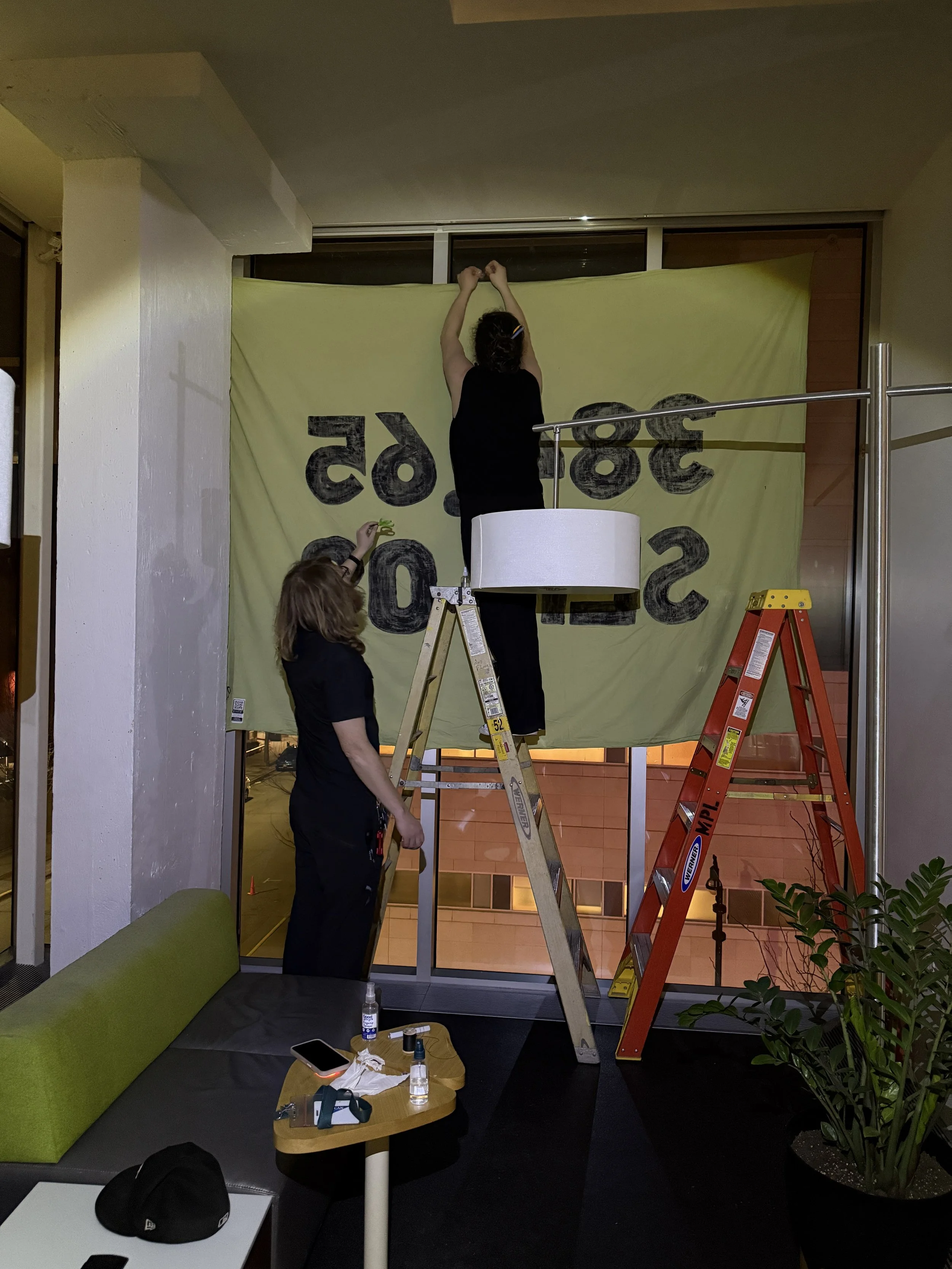 A special thank you to those who assisted in the three-floor installation of ‘Wake Up!’ at Central Library including: Pablo Baxter, Lars Koch, Samuel Johnson, Mitch Johnson, Stephen Balsley, Emily Balsley, Christine Holm, Maria Schirmer, Kathy Walker, Lauren Scanlon, Nate Smith, Ali Loker, Shloka Mohanty, Yasmin Trammel, Elee Sharpe, Aaron Gavney, Isabel Chiriboga-Pineda, and our special artist-in-residence Giacomo.